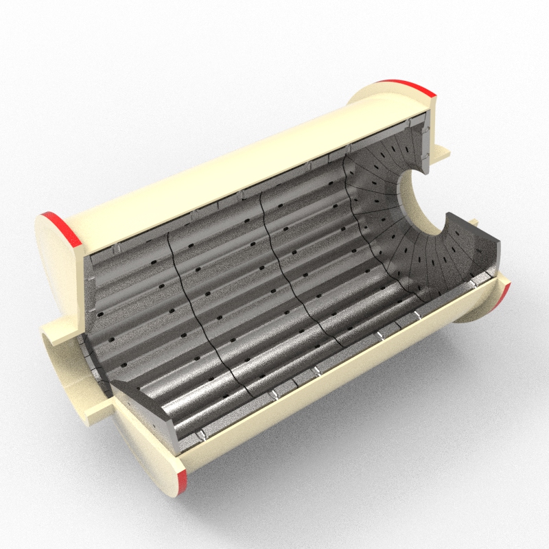 筒体衬板:包含平衬板、阶梯衬板、波形衬板、提升衬板等,用于保护磨机筒体,同时提升钢球落差强化磨矿效果