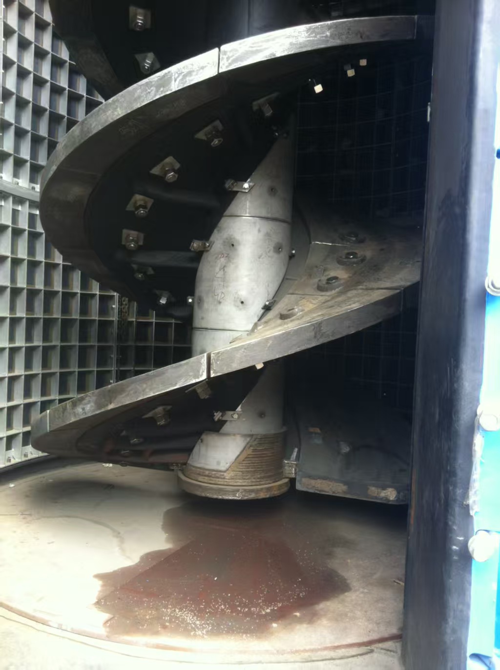 搅拌叶片磨损会导致布料不均,影响立磨粉磨效率与出料粒度,还会加剧搅拌臂基体磨损,需及时更换。